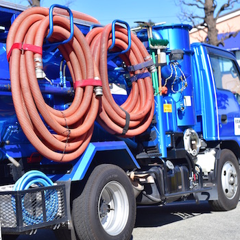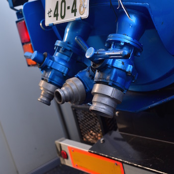 バキュームタンク、真空ポンプ装置、ダンプ装置、動力伝達装置等を架装し、汚泥水の吸上げ・輩出作業を行います。各種水槽、雨水槽、グリストラップ等の清掃に使用します。産業廃棄物処理法に基づき、運搬・処理を行うことができます。